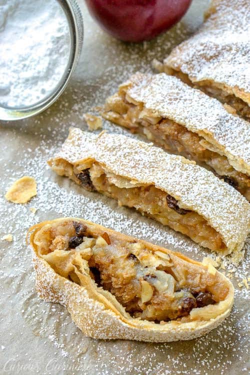 Apfelstrudel german. Apple strudel is a traditional and popular german and austrian dessert similar to apple pie in america. As a result you ll get a juicy apple and raisin filling encased in crisp flaky pastry. Wikipedia lexilogos langenscheidt duden wissen oxford collins dictionaries. With a delicate flaky buttery crust wrapped around a juicy spiced apple filling studded with rum soaked raisins and almonds this beautifully impressive dessert is perfect for special.