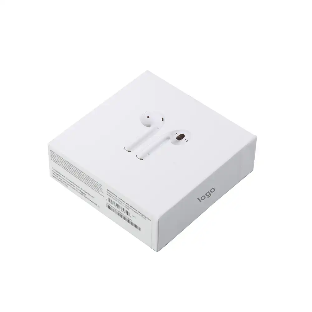 Apple airpods box. Whether you re using both airpods or just one the h1 chip automatically routes the audio and engages the microphone. Powered by the all new apple h1 headphone chip airpods use optical sensors and motion accelerometers to detect when they re in your ears. Powered by the all new apple h1 headphone chip airpods use optical sensors and motion accelerometers to detect when they re in your ears. Airpods pro were tested under controlled laboratory conditions and have a rating of ipx4 under iec standard 60529.