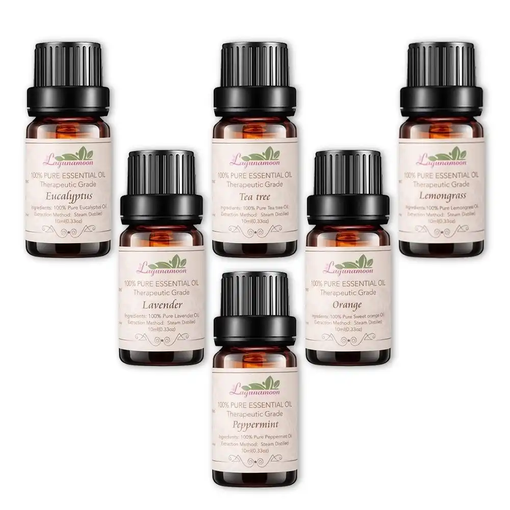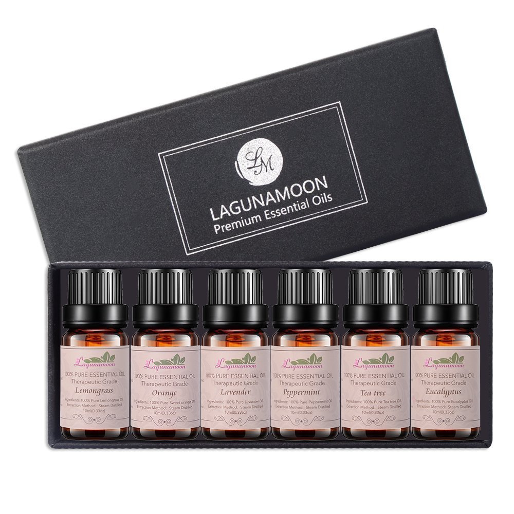 Lagunamoon essential oils gift set top 6 aromatherapy oils orange lavender tea. Essential oils top 6 gift set this gift set includes six 10ml bottles of aromatherapy essential oils. Lemongrass peppermint orange lavender eucalyptus and tea tree. Review summary for lagunamoon essential oils top 6 gift set pure essential oils for diffuser humidifier massage aromatherapy skin hair care based on 1000 user reviews. Lemongrass peppermint orange lavender eucalyptus and tea tree.