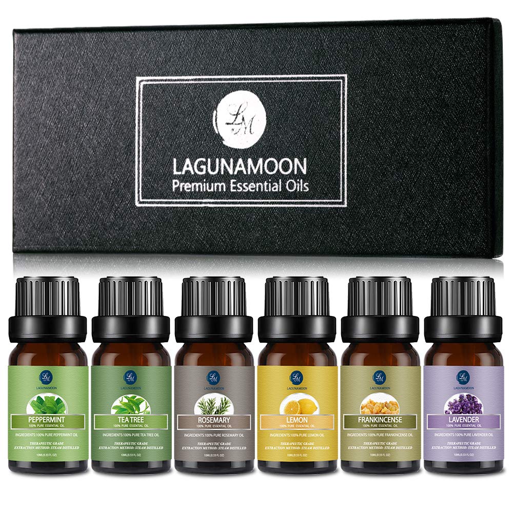 Achieve greater mind acuity promote and happiness with this set easy to mix and match for blending or dilution purposes. Lagunamoon fragrance essential oils gift set top 6 pure aromatherapy oils. Heighten mental sharpness with this lagunamoon essential oils gift set. All our oils are 100 pure and natural offering a huge variety of applications and benefits.