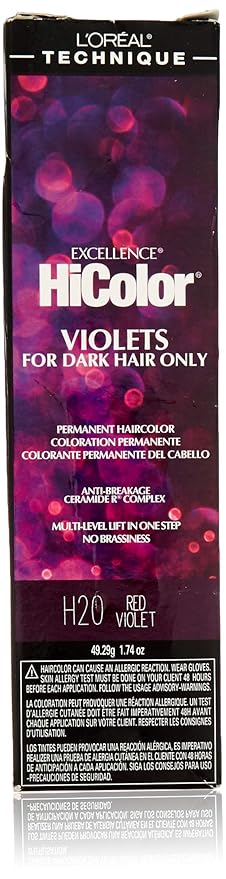 Loreal hicolor red violet results. L oreal h19 true violet permanent hair color. L oreal excellence hicolor red 1 2 oz pack of 3. Best yet and every mainstream brand in between and my hair still looks too red violet i want a blue violet will this be a good choice to get to a medium to deep blue based purple. 22 25 22.